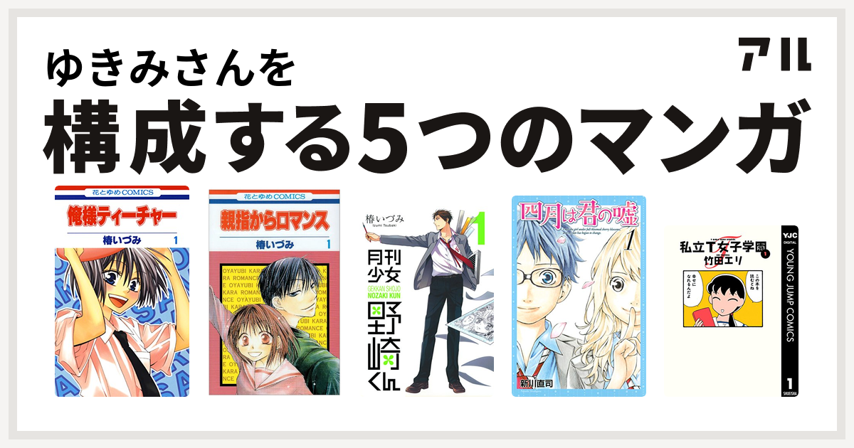 ゆきみさんを構成するマンガは俺様ティーチャー 親指からロマンス 月刊少女野崎くん 四月は君の嘘 私立t女子学園 私を構成する5つのマンガ アル